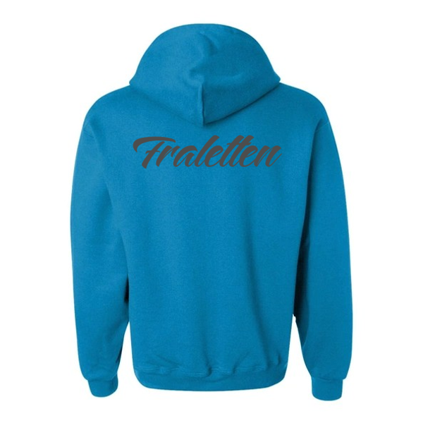 Hoodie met bedrukking links vooraan + bedrukking achteraan.